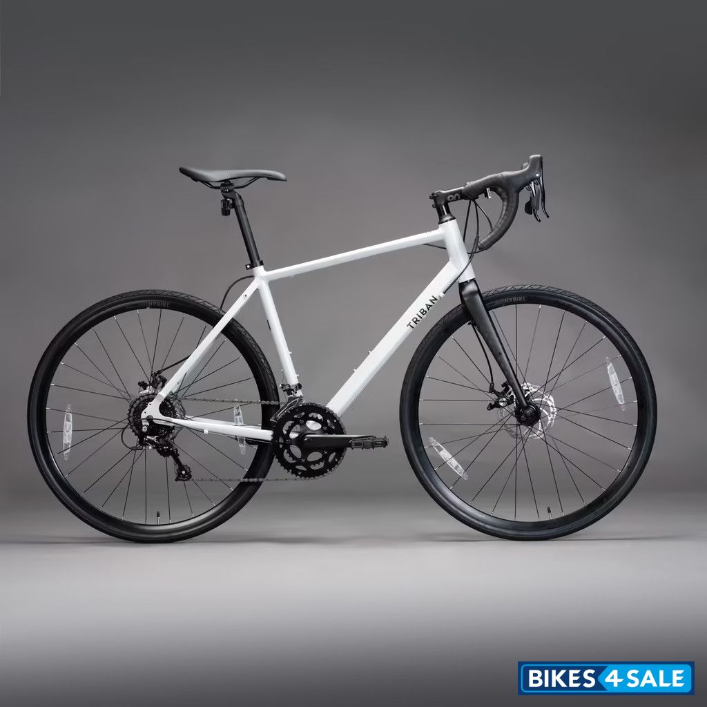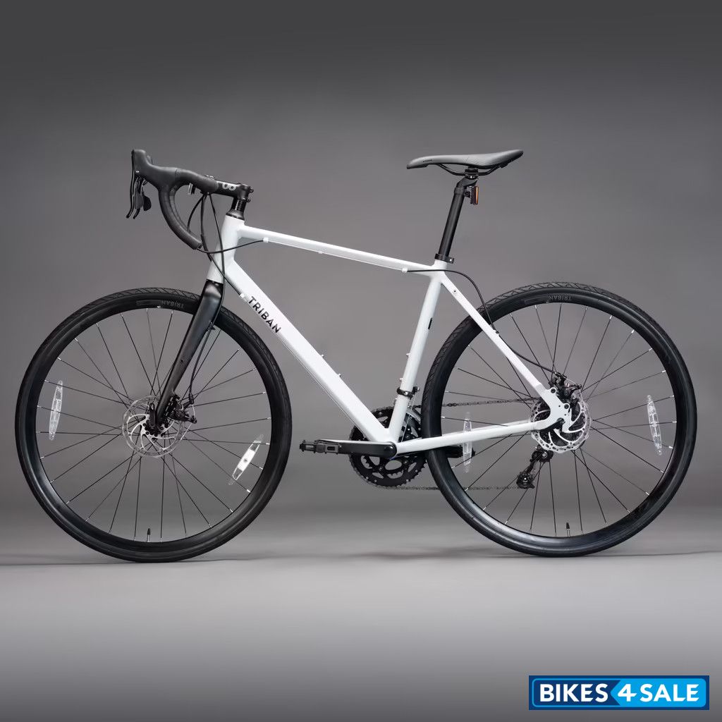 The Decathlon Triban RC120 bicycle, integrating a Microshift 8-speed shifter and a robust 6061 T6 aluminium frame, embodies durability and agility. Complemented by an aluminium seatpost, this bike ensures steadfast stability and resilience during rides. Ideal for cyclists pursuing a steadfast companion for their journeys, the Triban RC120 excels in both performance and endurance.