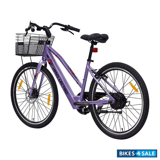 The Hero Cycles Lectro C4 Plus Electric Bicycle offers a reliable ride with its 250W BLDC motor and a top speed of 25 kmph. It comes equipped with a Li-ion 36W 5.8Ah battery, providing a range of up to 30 km. The LED display with pedal assist modes makes operation straightforward. This bicycle features a robust 16-inch Feather Light Al 6061 frame, ISO-certified disc brakes for responsive stopping power, and a comfortable premium saddle. It also includes handy accessories like a front basket and a chain stay mounted side stand. In summary, the Lectro C4 Plus delivers a practical and user-friendly riding experience.