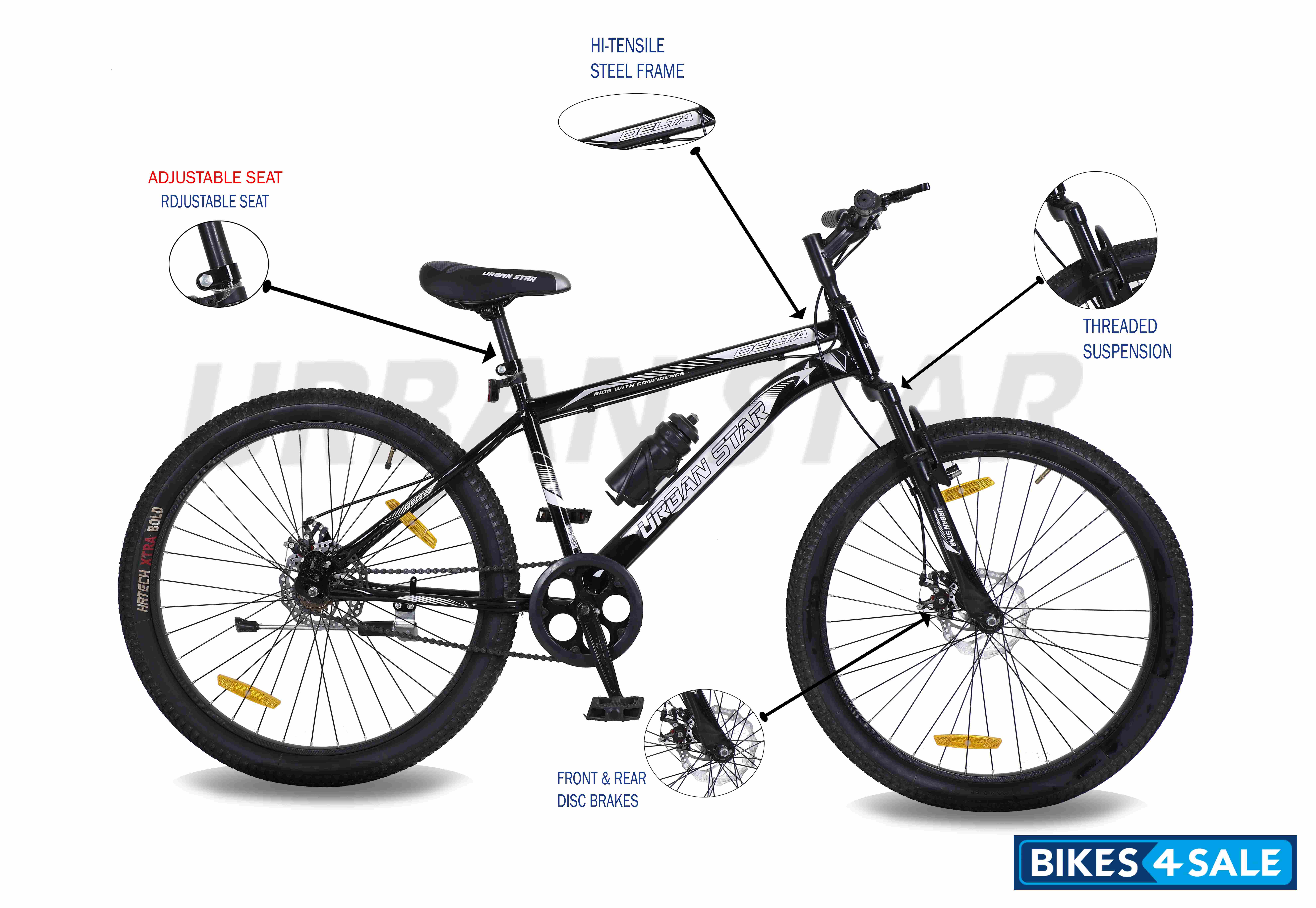 The Urban Star Delta 26T Dual Disc Bicycle is a sturdy and good choice for both boys and adults. Its high-tensile steel frame and front suspension fork make it suitable for various terrains, offering a smooth ride. The single-speed design simplifies use, while the dual disc brakes ensure good stopping power. The adjustable PU saddle and strong crankset add to the bike's comfort, making it a practical option for everyday cycling.
