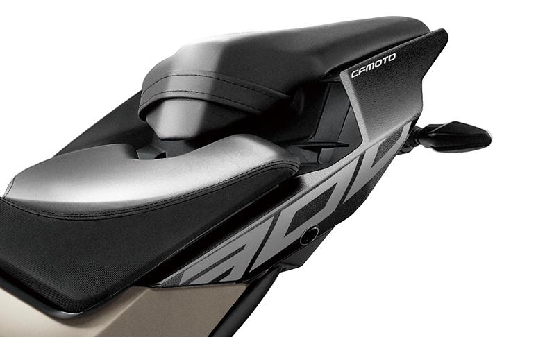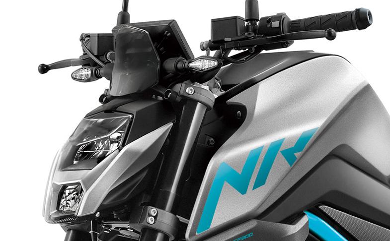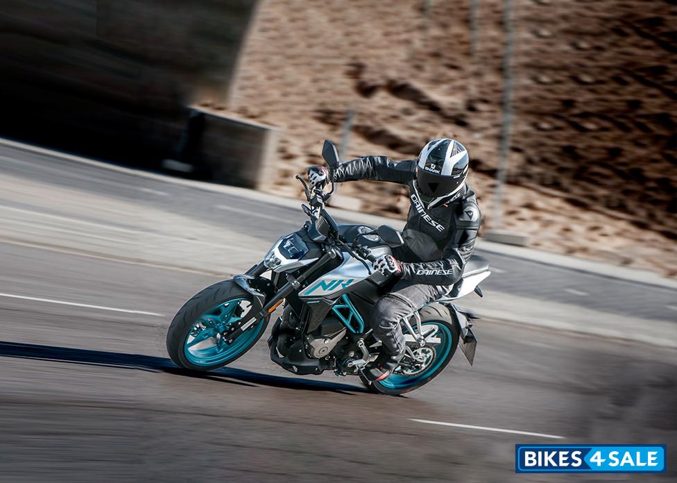 The CFMoto 300NK is a noteworthy addition to the entry-level sportbike segment. It boasts a liquid-cooled single-cylinder engine with a displacement of 292.40cc and 4-valve DOHC configuration, which delivers a peak power output of 27.49 hp at 8750 rpm and 25 Nm of torque at 7000 rpm. The inclusion of a balance shaft reduces vibrations and enhances the overall riding experience. The bike comes equipped with Dual Channel ABS, which provides safe and stable braking performance, and an all-color TFT display that offers crisp and clear information to the rider. The blue and grey color options add a touch of sportiness and elegance to the bike's overall appearance.