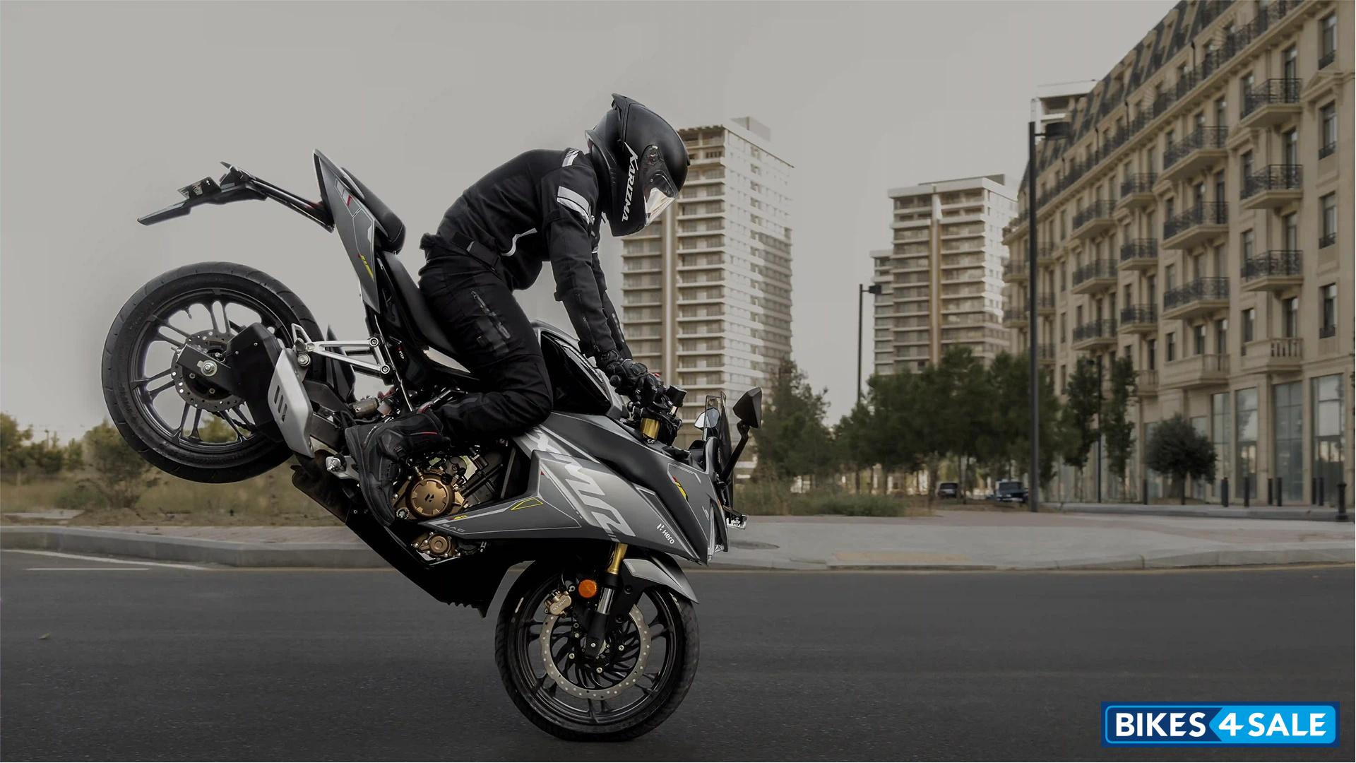 The 2025 Hero Karizma XMR Combat Edition gets a dark matte look. It uses a 210cc liquid-cooled, 4-valve, single-cylinder DOHC engine. The sharp panels and low stance give it a serious street presence. This version keeps things minimal but still feels bold.