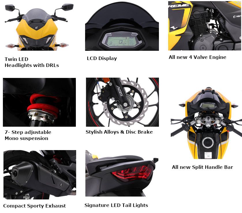 The Hero Xtreme 200S 4V has just hit the market in July 2023, and it's creating waves in the motorcycle scene. This brand-new model is a true powerhouse, fueled by petrol and featuring a robust 199.60 cc oil-cooled, 4-stroke single-cylinder engine. With both electric and kick start options, starting this bike is a breeze. The fuel injection system ensures optimal performance, delivering a maximum power of 18.8 ps at 8500 rpm and a torque of 17.35 ps at 6500 rpm. The Xtreme 200S 4V boasts a sleek LCD display, twin LED headlamp, and LED tail lamp for enhanced visibility. Equipped with front and rear disc brakes, it guarantees exceptional stopping power. With its stylish alloy wheels, telescopic front suspension, monoshock rear suspension, and smart phone connectivity, this motorcycle offers a thrilling and cutting-edge riding experience. The Hero Xtreme 200S 4V has just arrived, and it's ready to conquer the roads with its impressive features.