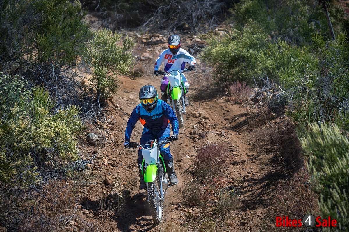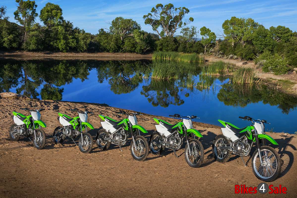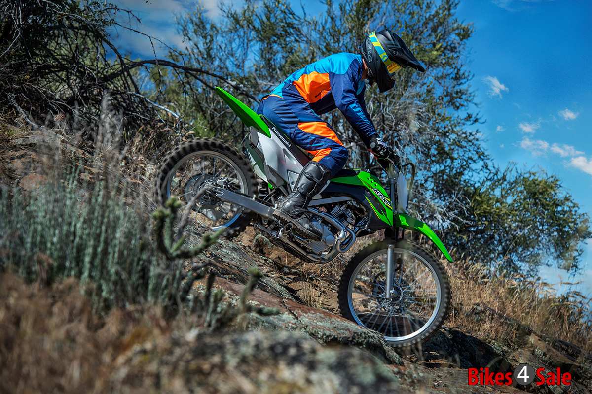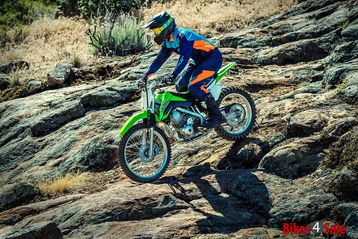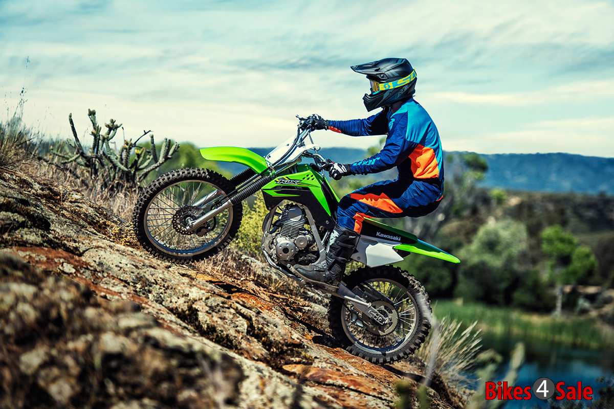 KLX 140G is powered by 144cc, air-cooled, four stroke engine which provides strong torque, which helps the beginners a lot. This strong and durable engine offers rock solid durability and low maintenance. Engine is mated with a 5-speed gearbox with the help of manual clutch. The front suspension of the KLX gets a telescopic fork while rear suspension features a Uni-Trak with Aluminium single shock. As these range of bikes are meant for off-road and untamed terrains, the suspension travel is quiet high. The 21-inch front wheel gets a 220mm petal disc with dual-piston brake while rear gets 190mm petal disc with single-piston brake.