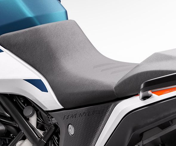 The KTM 250 Adventure 2022 is a capable and versatile motorcycle that boasts a powerful 248cc engine, delivering 29.5 BHP and 24 Nm of torque. Equipped with BYBRE disc brakes on both ends and 2-channel ABS with an off-road mode, the bike provides reliable stopping power in various terrains. The off-road ABS feature enhances safety during off-road adventures, giving riders more confidence. The 250 Adventure also features 5-spoke cast wheels, providing stability and durability on rough trails. The Bosch EMS (Engine Management System) adds to the bike's performance and efficiency. With two striking colour options, Electronic Orange and Factory Racing Blue, the KTM 250 Adventure 2021 is a stylish choice for adventure enthusiasts. Priced at around 2.44 Lakh rupees (ex-Showroom, Delhi), it offers a competitive option in the adventure motorcycle segment.).