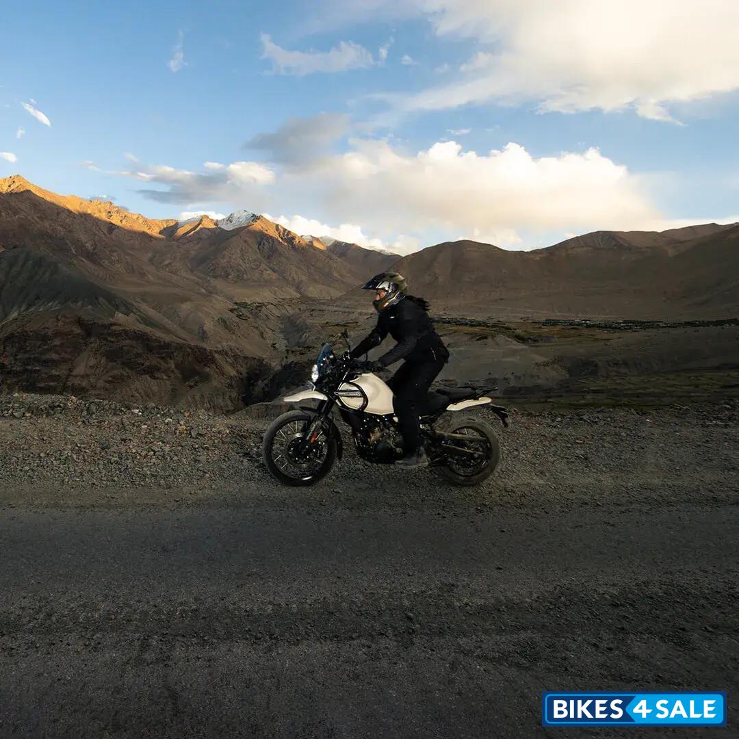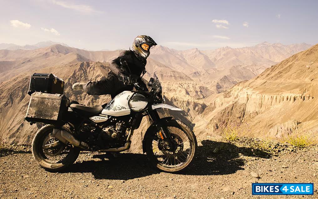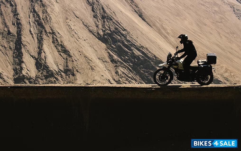This model is available in several color variants, each with a distinct price. The given price is for Kaza Brown version is priced at Rs. 2,69,000. For those preferring different hues, there's Hanle Black at Rs. 2,84,000, Kamet White at Rs. 2,79,000, and two Slate options - Poppy Blue and Himalayan Salt, both priced at Rs. 2,74,000. Each color variant encapsulates the spirit of adventure and performance that the Himalayan 450 is known for.