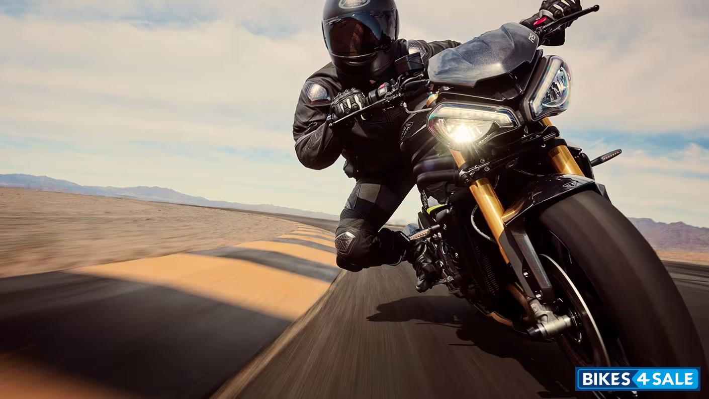 The 2025 Triumph Speed Triple 1200 RS is powered by a 1160cc inline 3-cylinder engine that delivers 183 PS at 10,750 rpm and 128 Nm of torque at 8,750 rpm. This liquid-cooled, 12-valve engine ensures a thrilling performance at high revs. The new model continues to offer superb agility, making it a standout in terms of handling and responsiveness. A refined suspension system ensures a smooth ride, while advanced braking components add to the confidence in high-speed situations. With its updated design and focus on performance, the Speed Triple 1200 RS provides a refined experience on both twisty roads and highways.