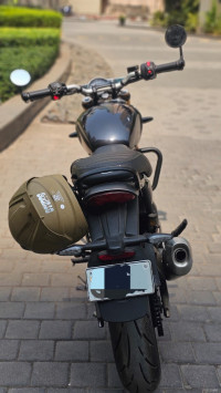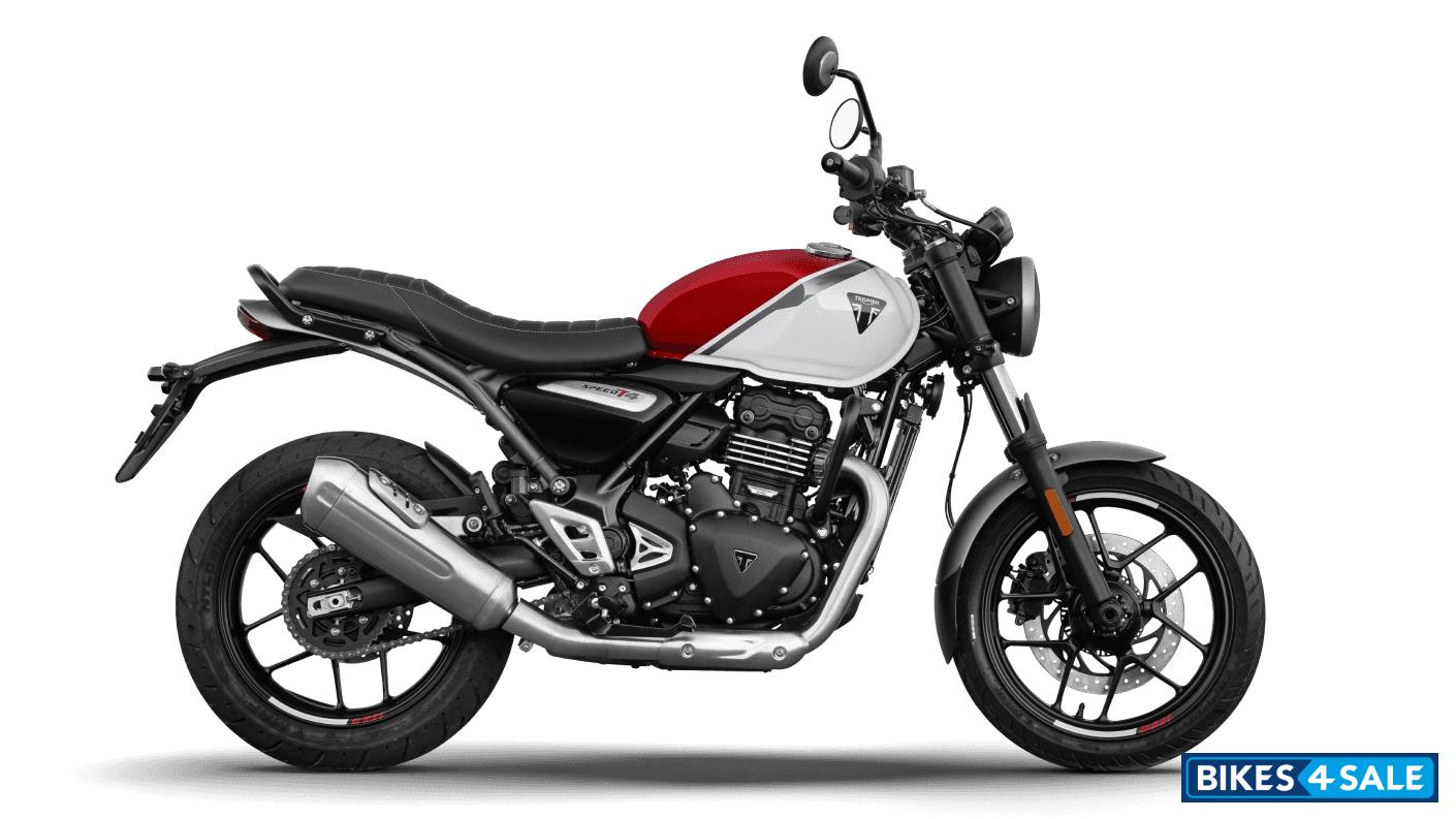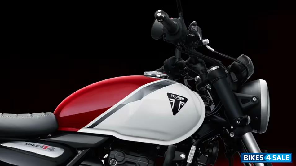 The Triumph Speed T4 packs a 398.15 cc liquid-cooled, single-cylinder engine, generating 31 Ps at 7,000 rpm and 36 Nm torque at 5,000 rpm. Its analogue speedometer with an integrated LCD screen provides essential data clearly, enhancing the overall functionality. This setup ensures a responsive and efficient performance for riders.